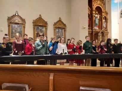 The choir meets once a week on Wednesday mornings at 6:50 am to learn songs not necessarily taught in the classroom during the day. The students learn special songs to be sung at weekday Masses. The choir includes students from 2nd-5th grade. Students work together to make beautiful music to enhance our worship at St. Peter Catholic Church.